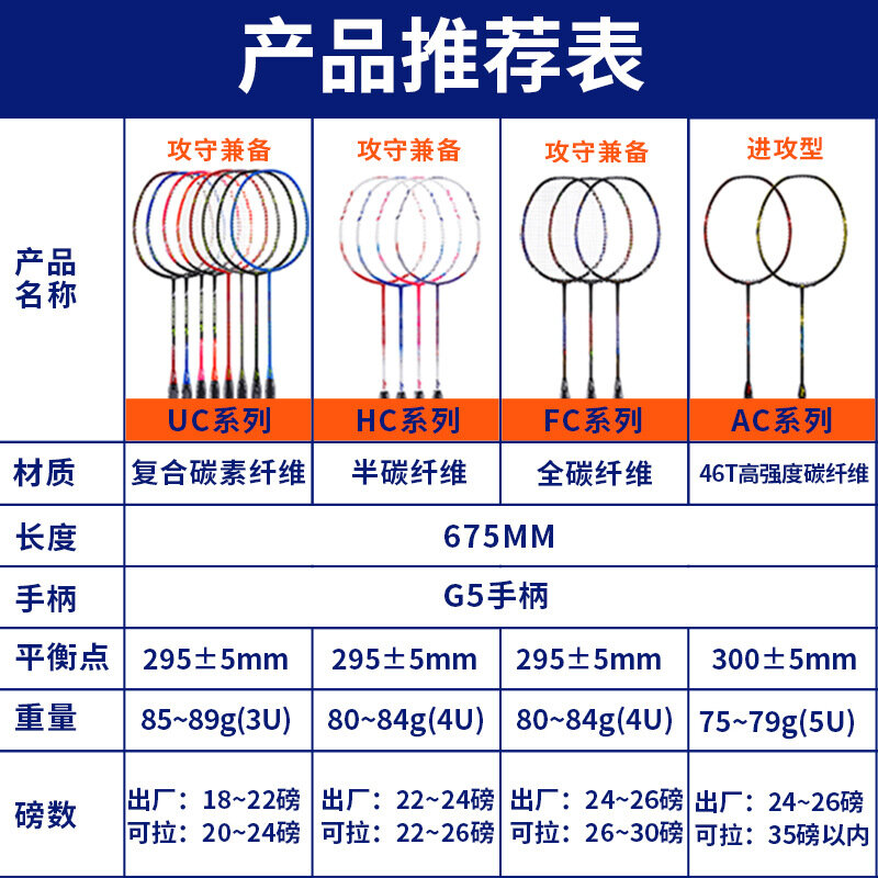 Бадминтонная ракетка UC3720, композитный углерод, 3U, двойная рама