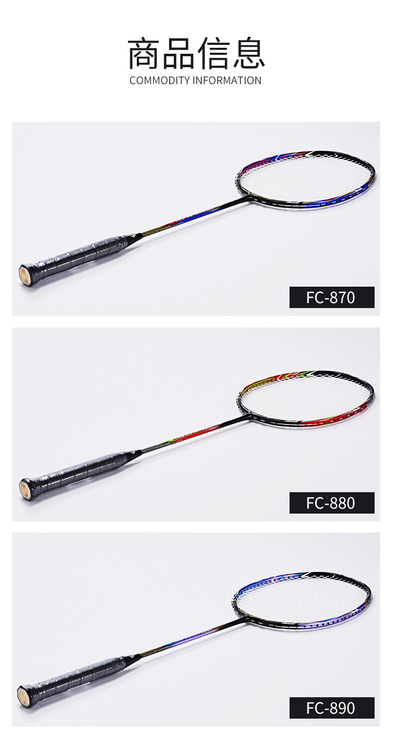 Ракетка бадминтонная FC870, полностью углеродистая, 4U, двойная, высококачественная сталь