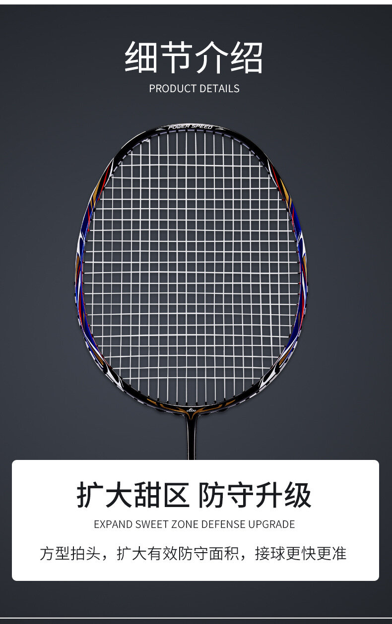 Ракетка для бадминтона, 4U, full carbon, feather shot, двойная съемка, HC790