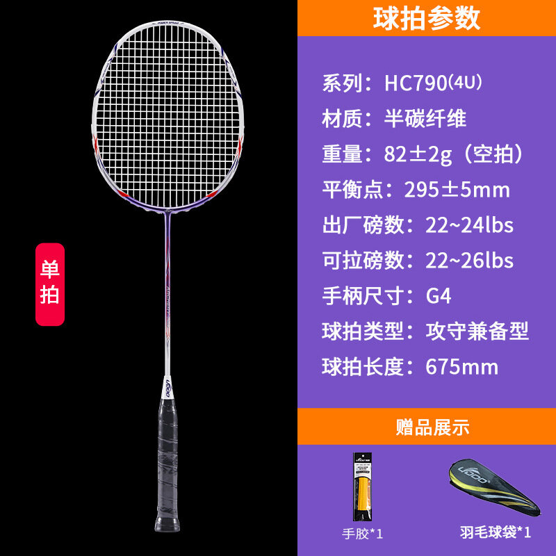 Купить Ракетка бадминтонная "HC790", 4U, полностью углеродная, 24 фунта