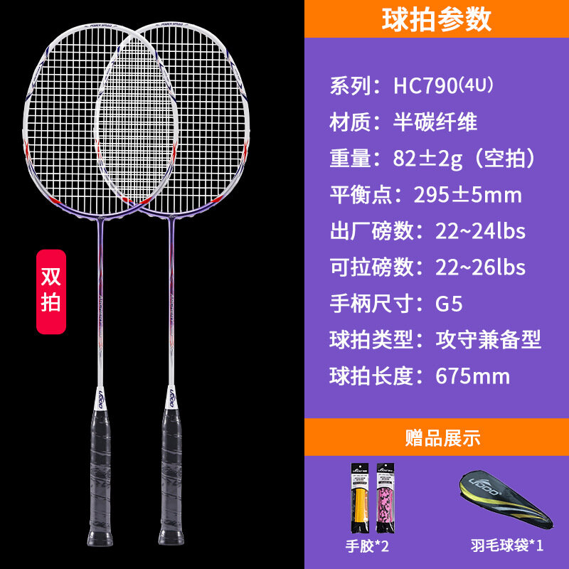 Ракетка бадминтонная "HC790", 4U, полностью углеродная, 24 фунта