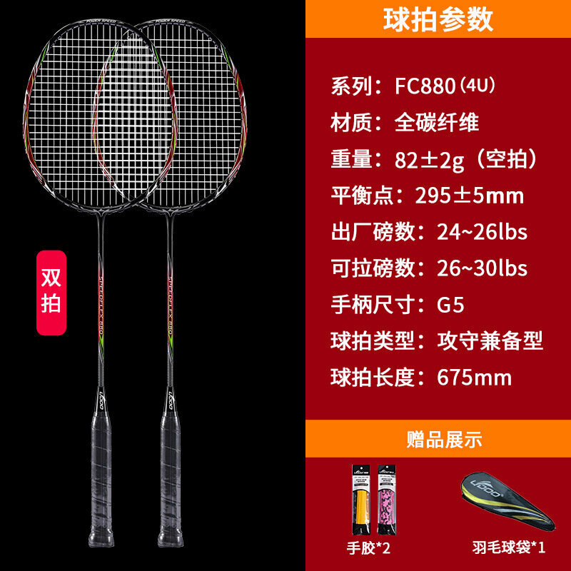 Купить Ракетка бадминтонная FC880, 4U, углеродная, 24 фунтов