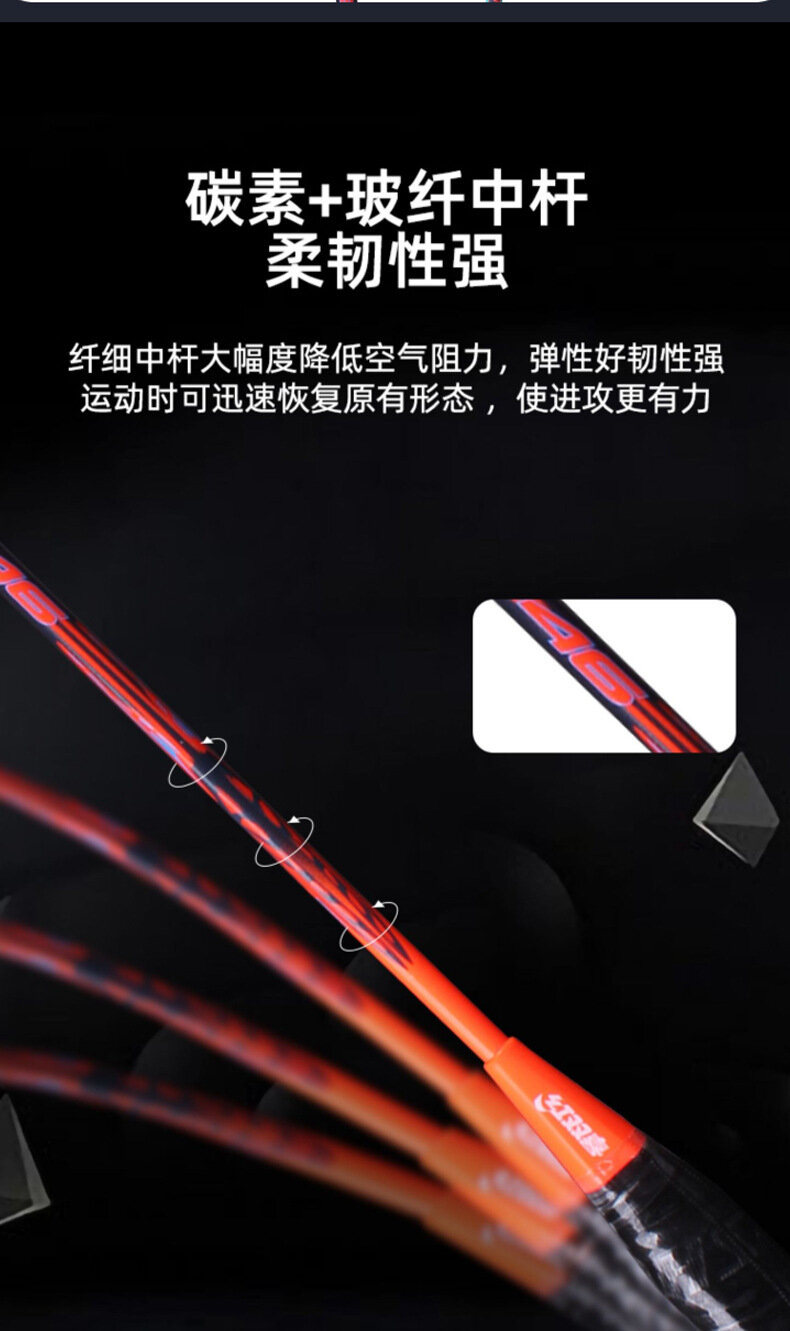 Ракетка Double Happiness Carbon Offensive, для бадминтона, из углеродного волокна, 46 перьев