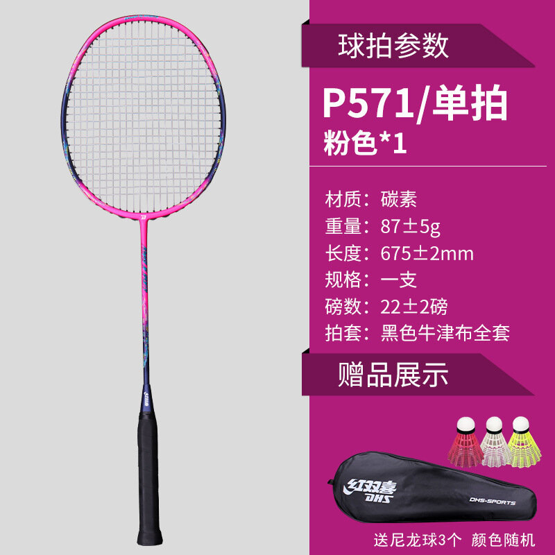 Купить Ракетка Double Happiness Carbon Offensive, для бадминтона, цвет P571 Feather Shot Pink, 1 упаковка
