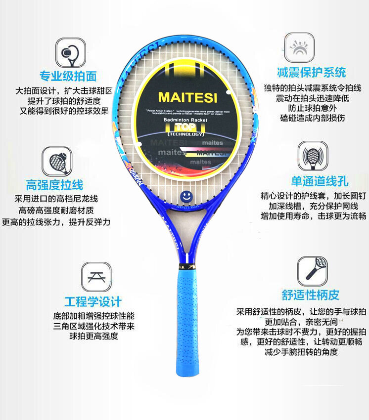 Теннисная ракетка, для начинающих, с тренажером, небесно-голубая интересное: