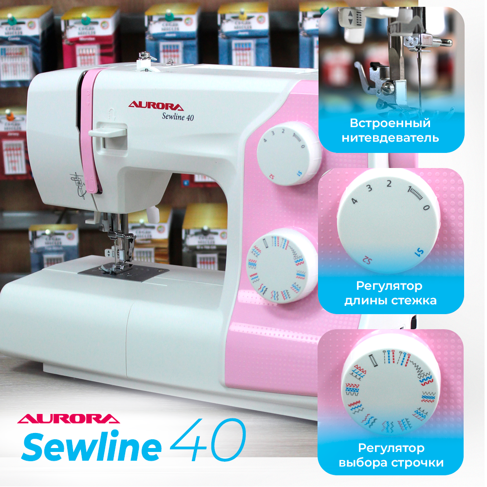 Швейная машина Aurora "SewLine 40", электромеханическая, с нитевдевателем, 70Вт. Металлическая станина.