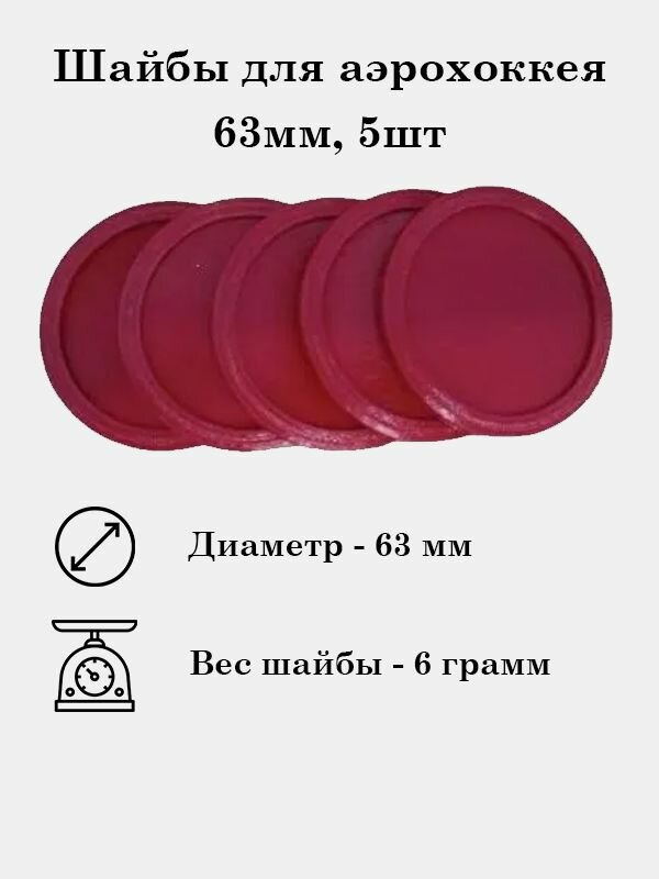 Набор шайб для аэрохоккея 63мм - 5 шт (красные) интересное: