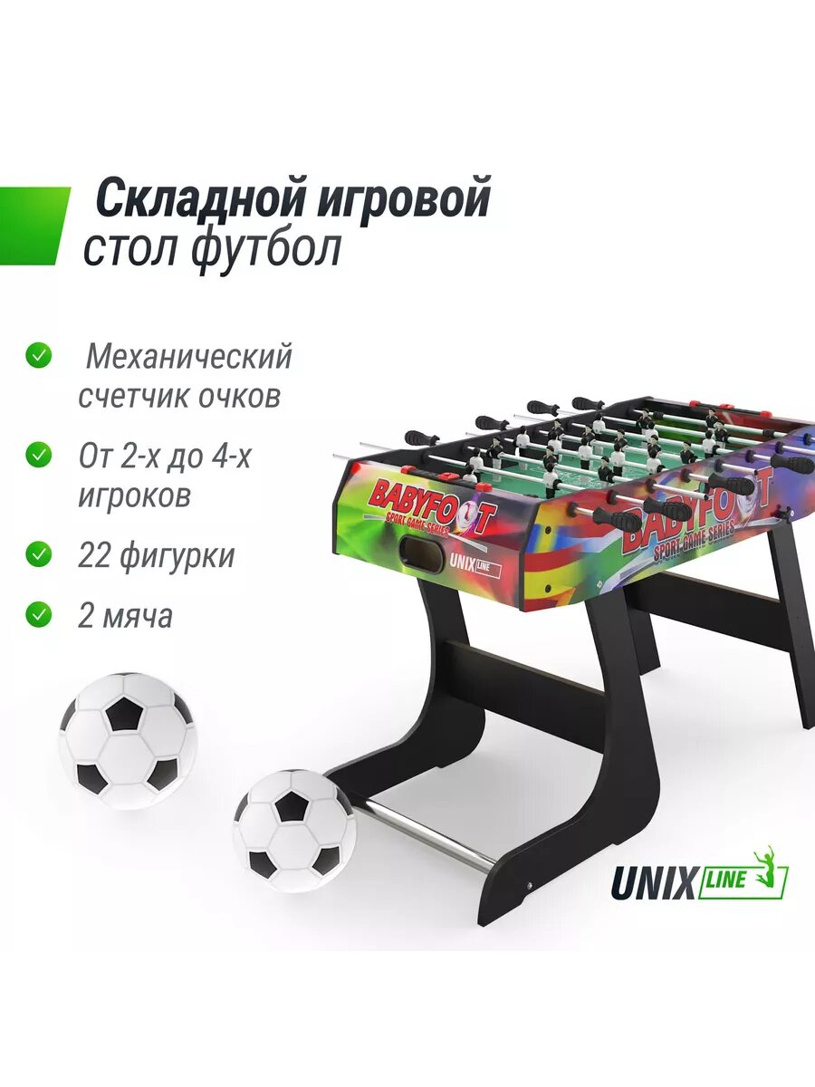 Игровой стол UNIX Line Футбол Кикер, 122х61 cм, складной UNIXLINE интересное: