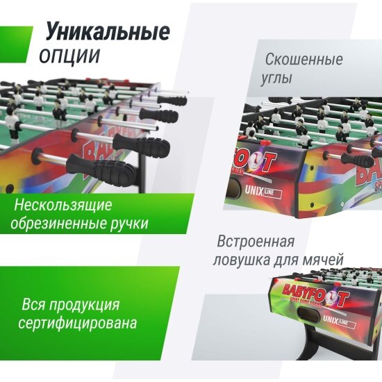 Игровой стол UNIX Line Футбол Кикер, 121х61 cм в комплекте:2 мяча 35 мм, 22 игрока, UNIXLINE