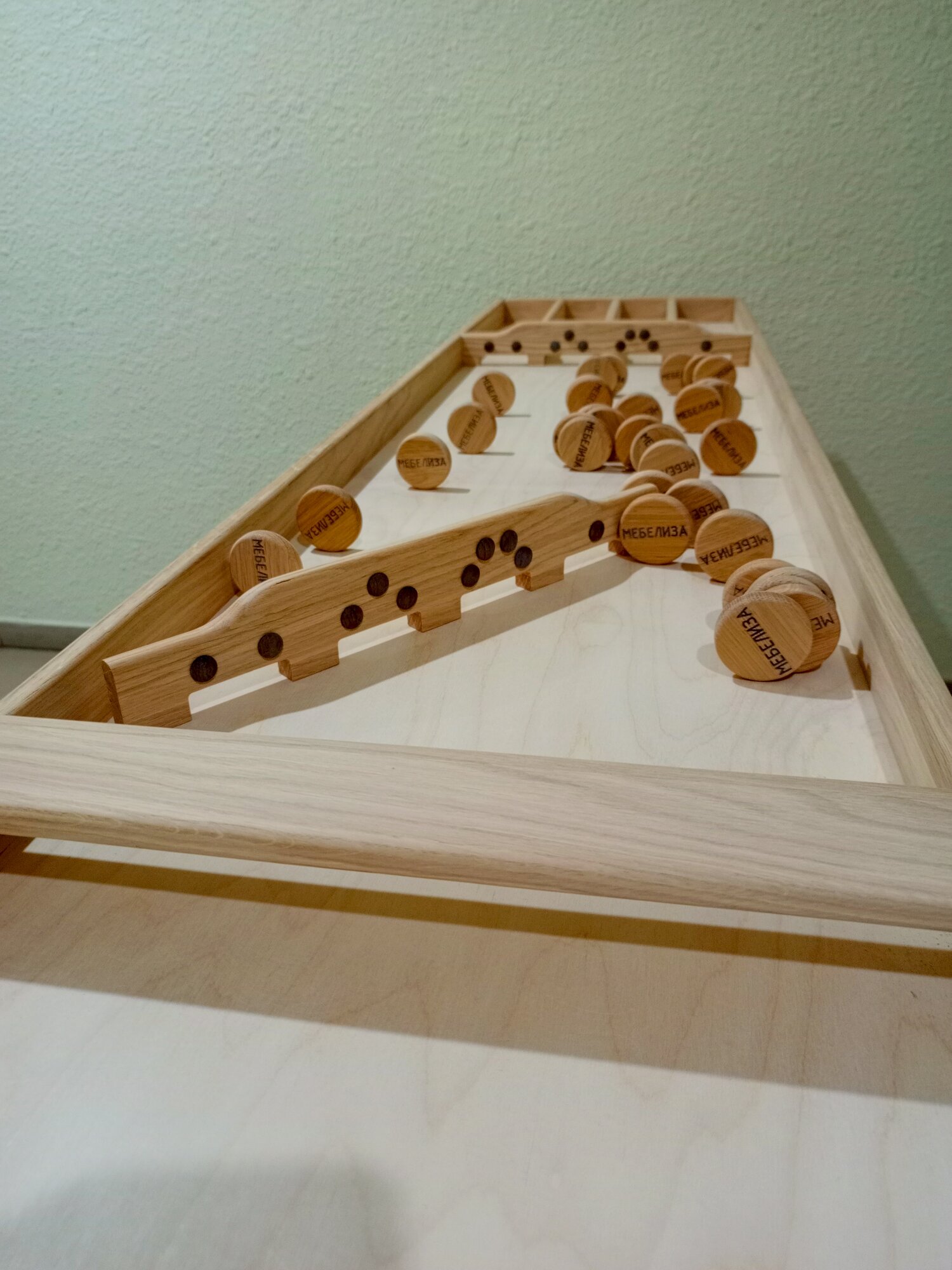 Игра Джакколо-Про (Jakkolo) из массива Дуба с фетровыми подпятниками. Дуб натуральный. Размеры 44 см х 199 см х 86 см интересное: