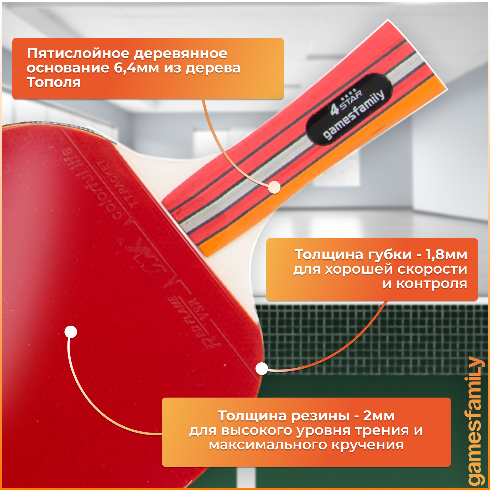 Купить Ракетки для настольного тенниса: 2 ракетки 4 звезды, 3 белых мячика и серый чехол