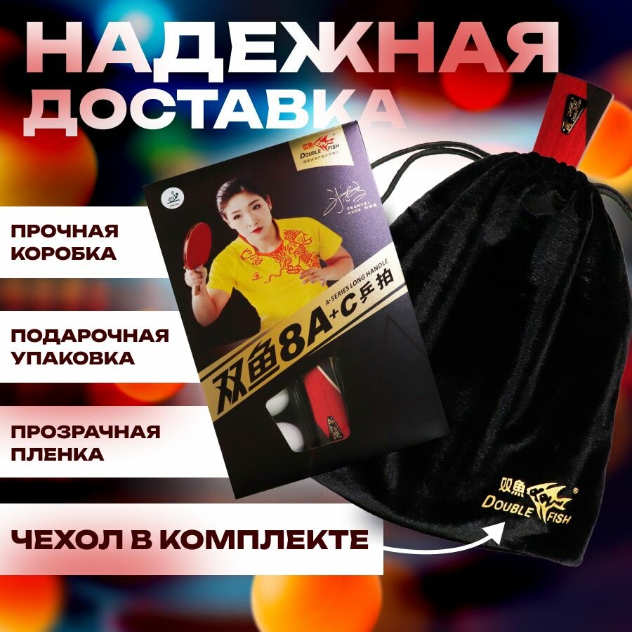 Ракетка для настольного тенниса Double Fish 8A+C (ракетка + 2 мяча + чехол) 8 звезд, профессиональная интересное: