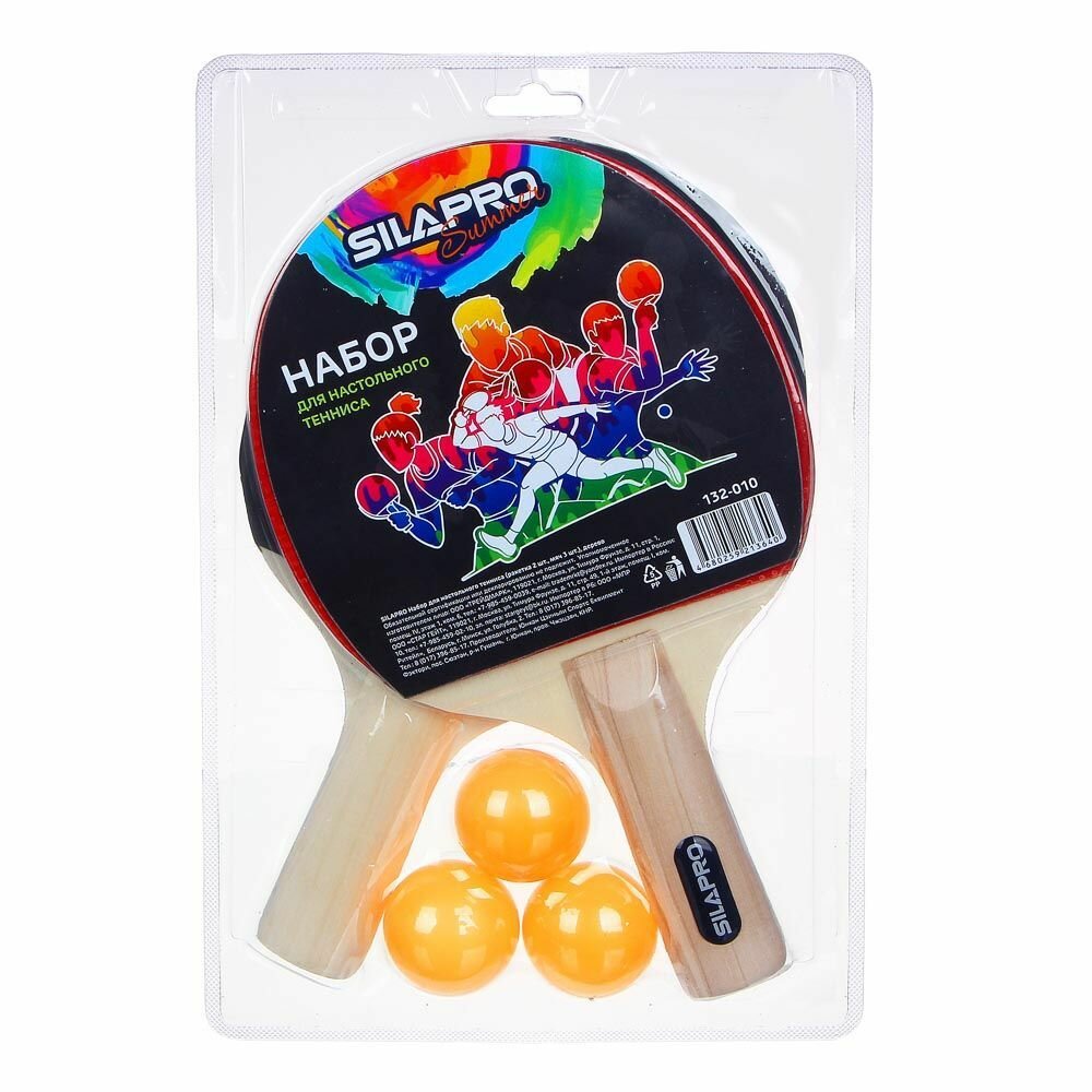 SILAPRO Набор для настольного тенниса (ракетка 2шт, мяч 3 шт.), дерево интересное: