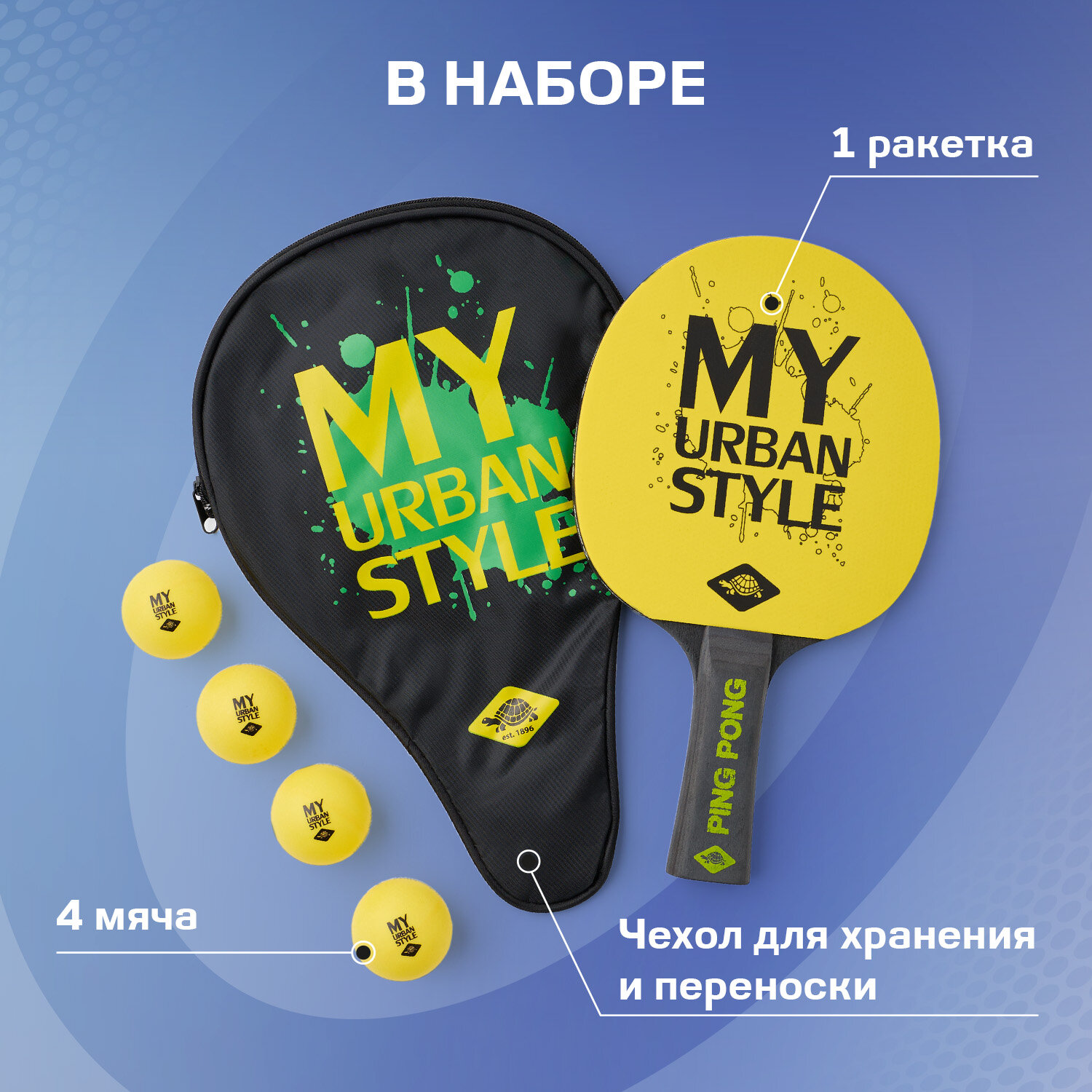 Купить Набор для настольного тенниса Donic-Schildkrot My Urban Style (1 ракетка + 4 мяча + чехол)