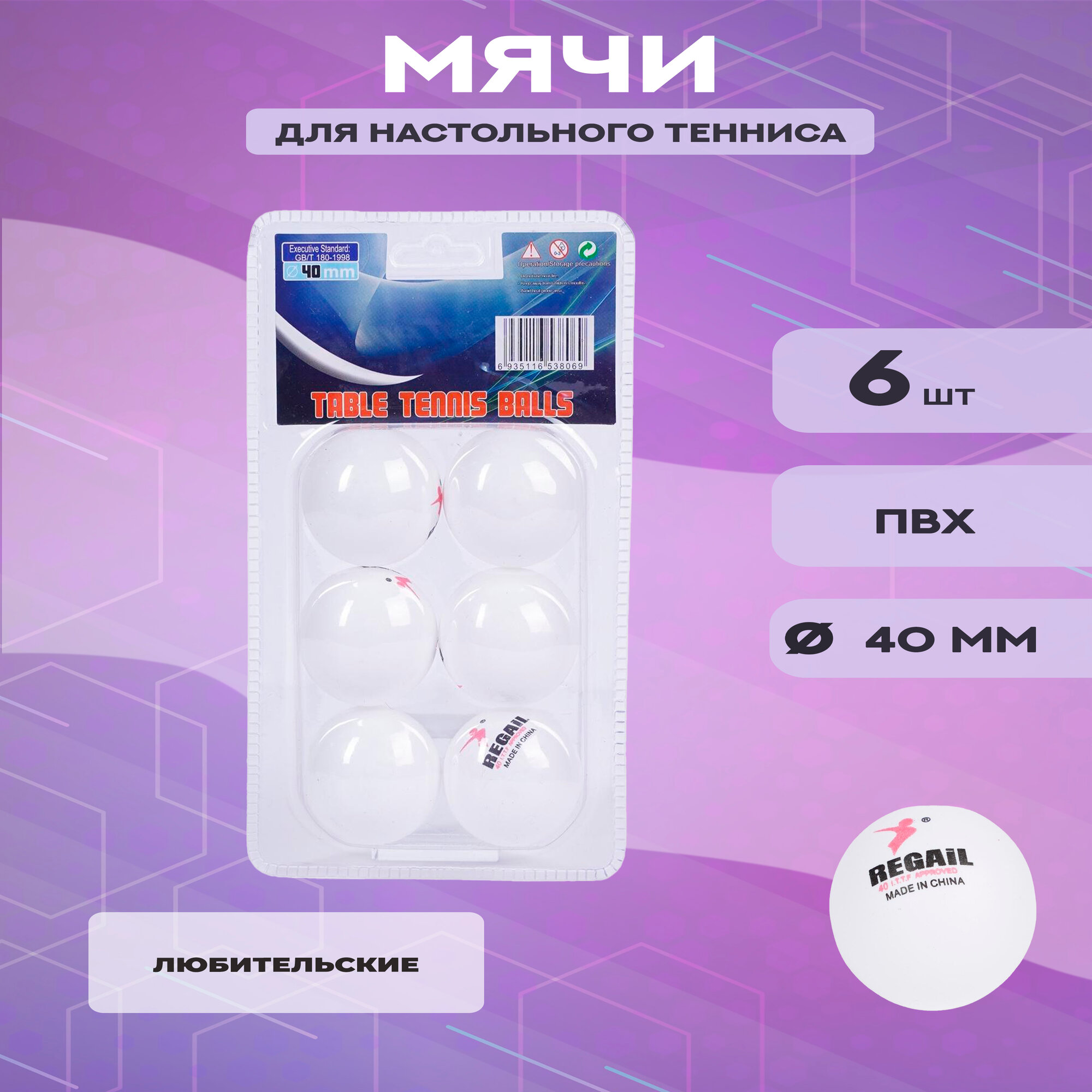 Мячи для настольного тенниса Regail в блистере (белые, 6 штук) интересное: