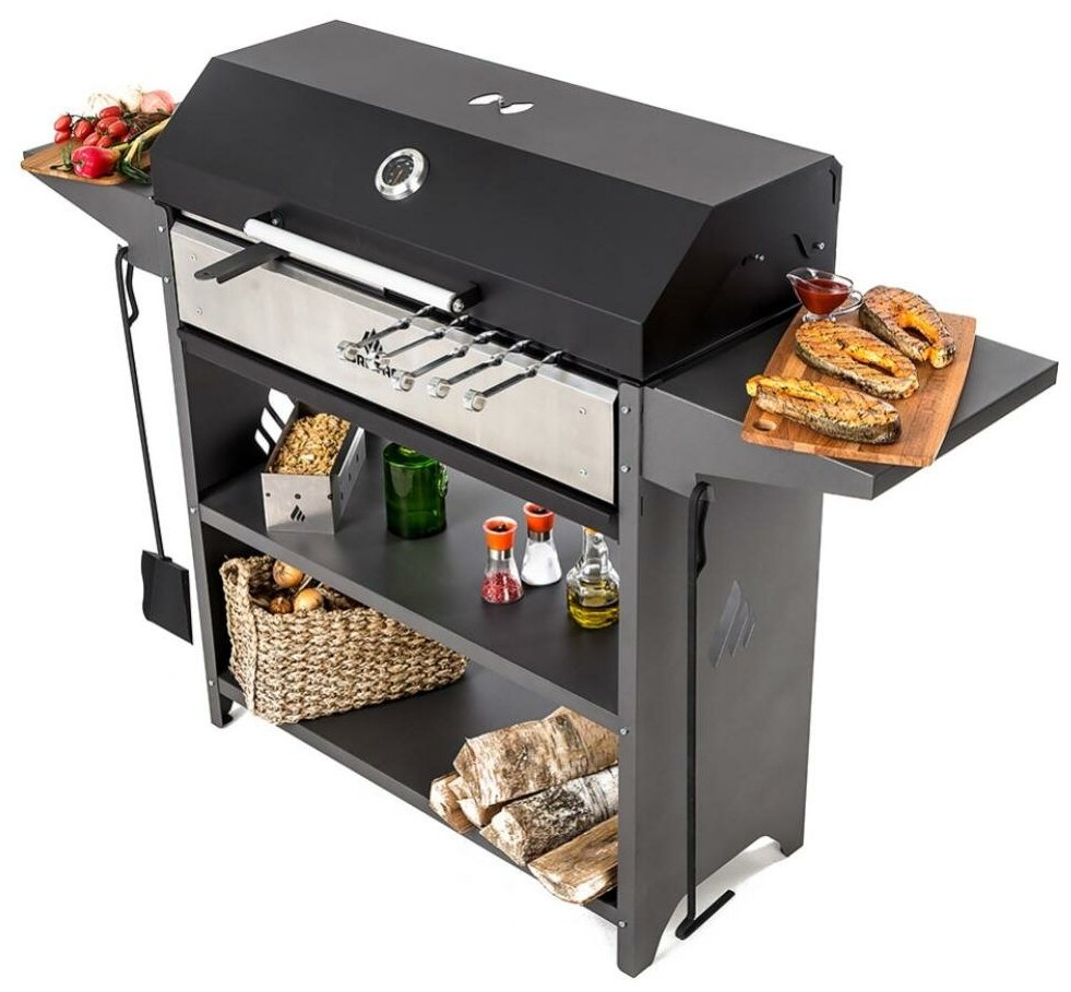 | Плюсы: | Хороший гриль, надежный. Сделан из более-менее нормального металла, не фольга. Места хранения удобные, полочки по бокам помогают. Есть крючки для щипцов, ножей, щеток, решеток и т.д. Удобно чистить гриль. |