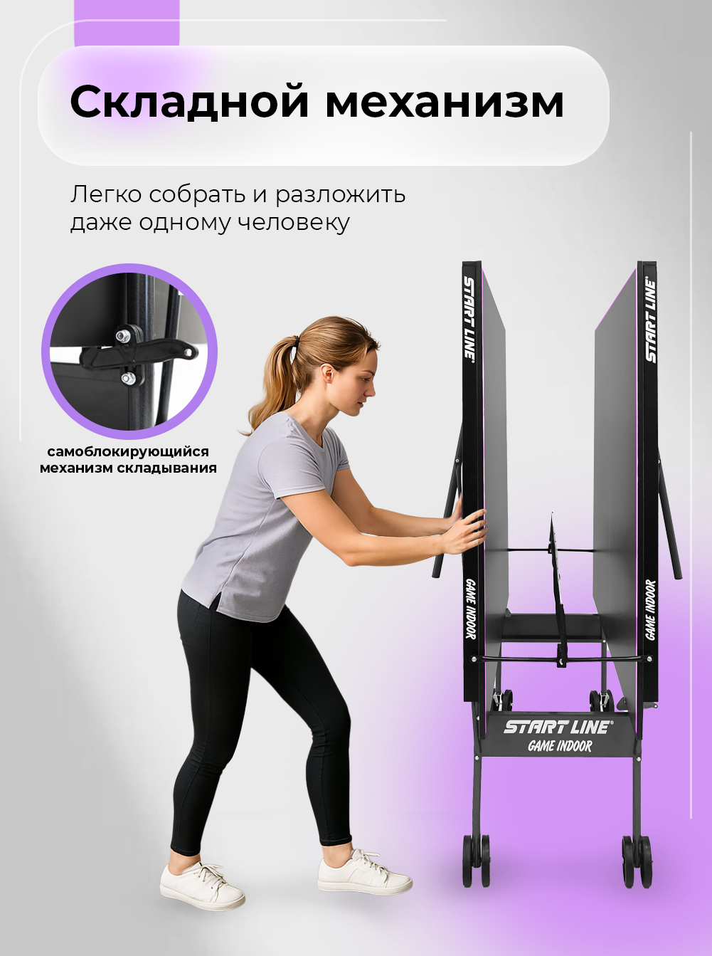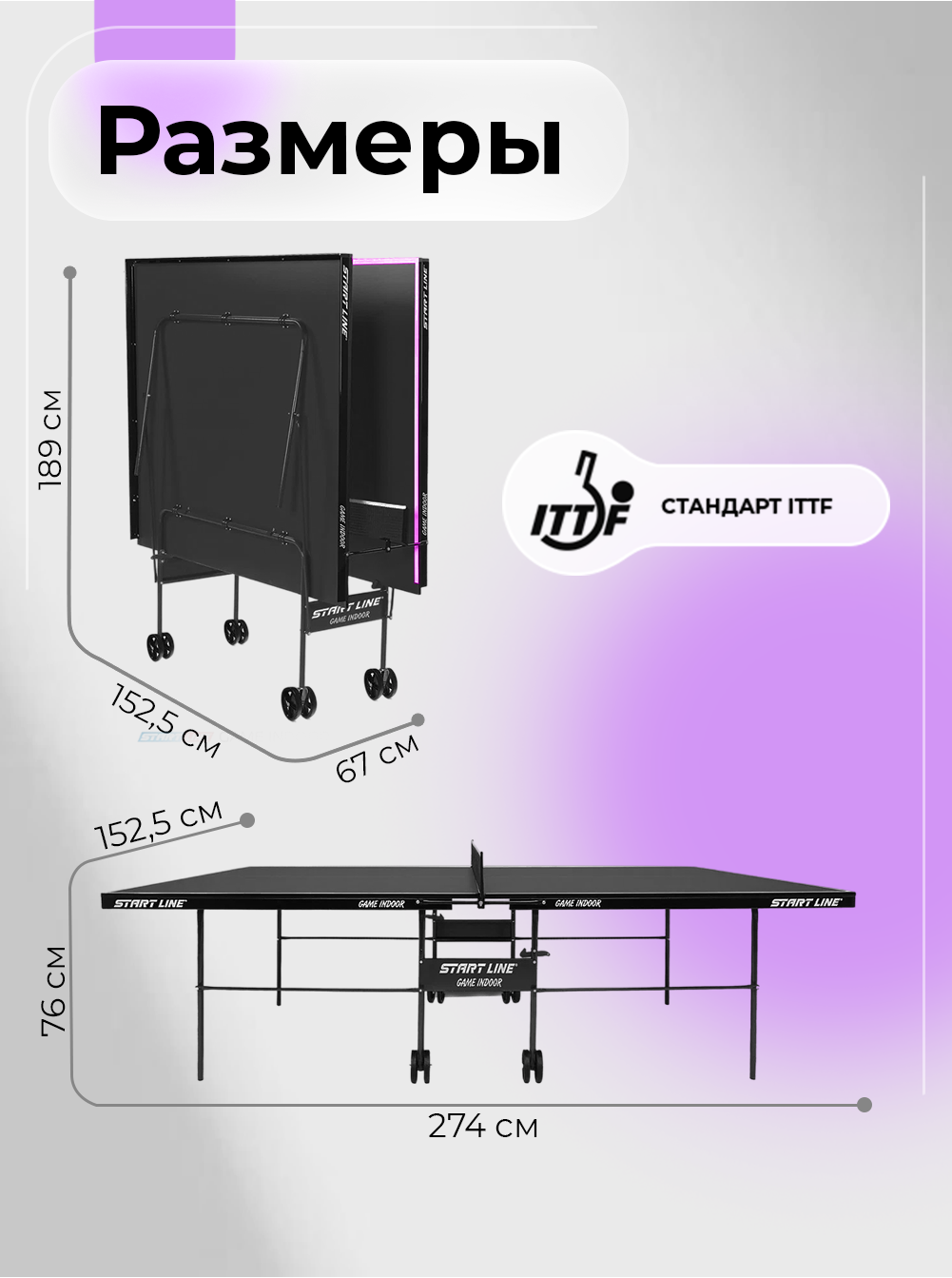 Теннисный стол Start Line Game Indoor черный, складной, для помещений, для дома, с встроенной сеткой и колесами интересное: