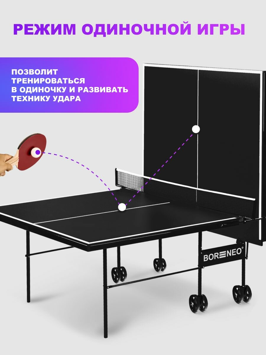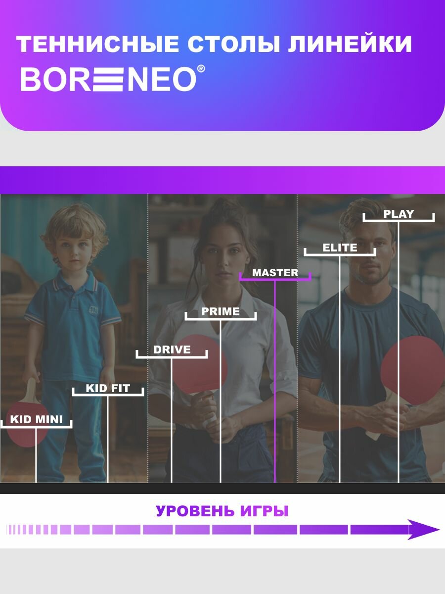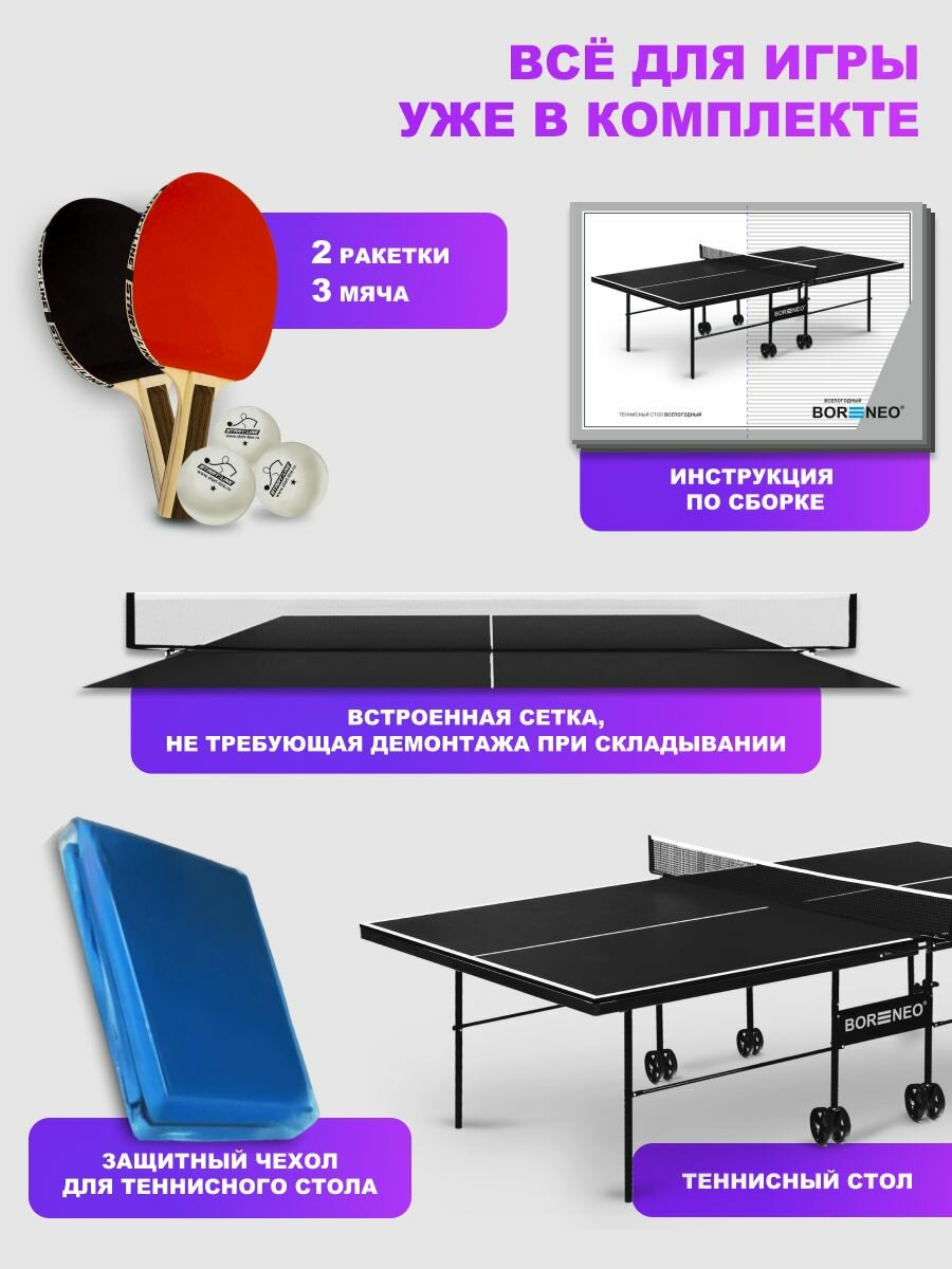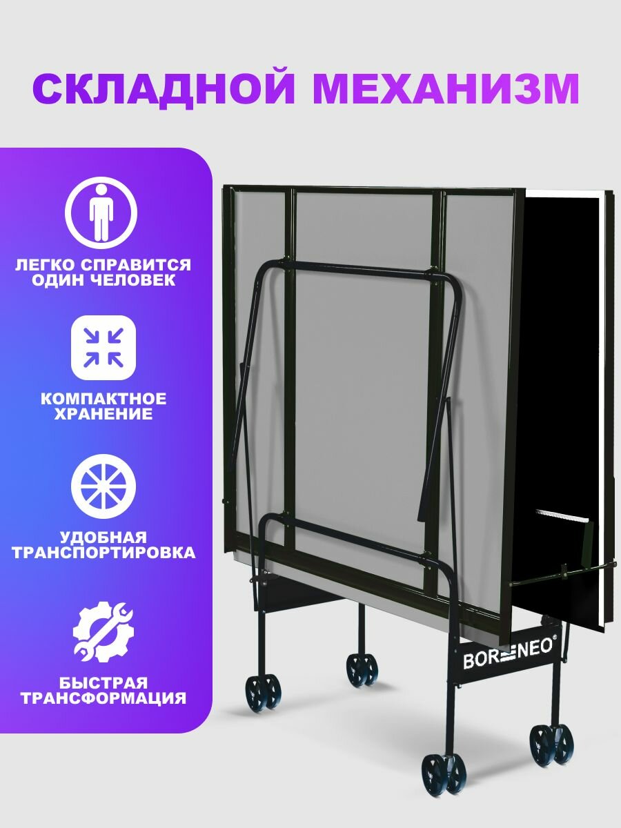 Теннисный стол всепогодный, для улицы Bor Neo MASTER OUTDOOR черный, складной, с комплектом: 2 ракетки, 3 мяча, чехол интересное: