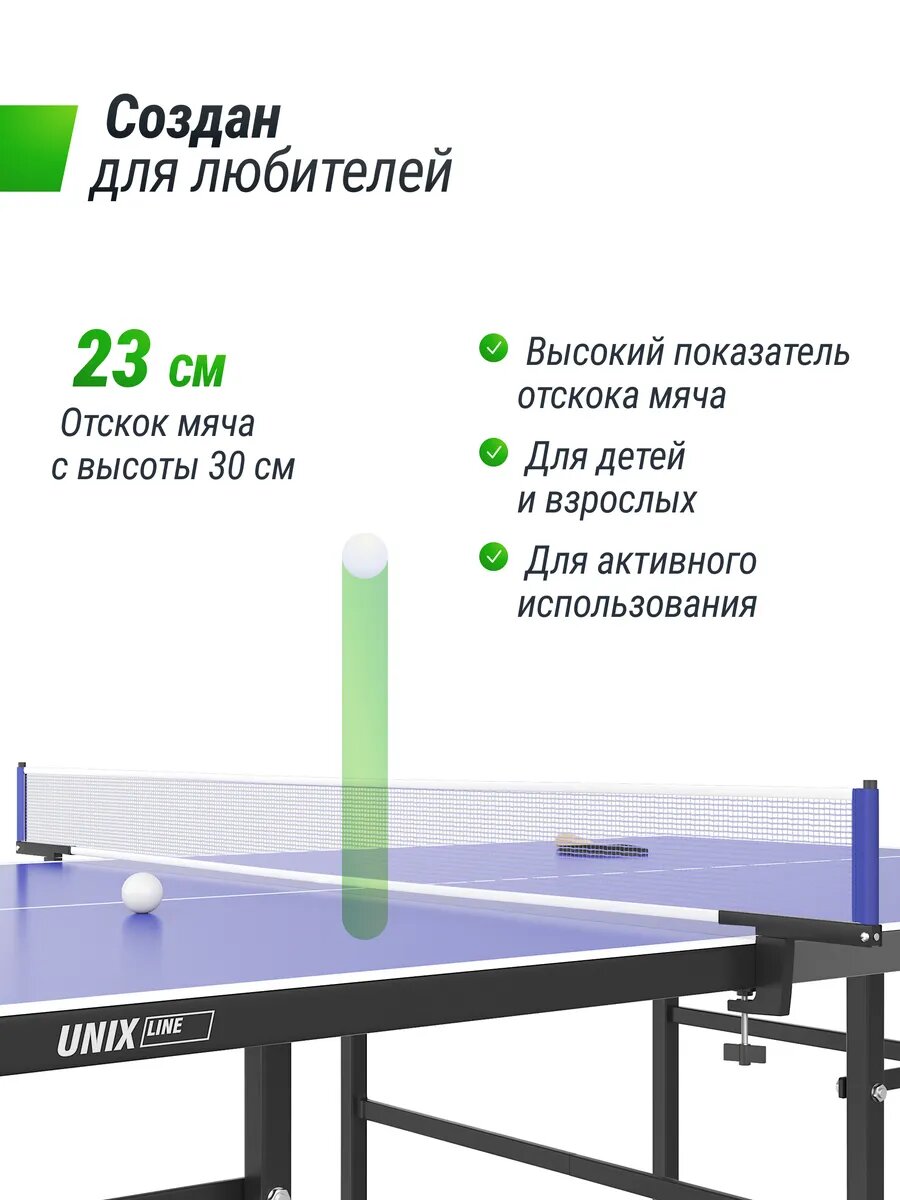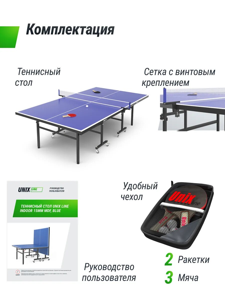 Теннисный стол UNIX Line Indoor 15 mm MDF (Blue), 2 ракетки, 3 шарика в комплекте интересное: