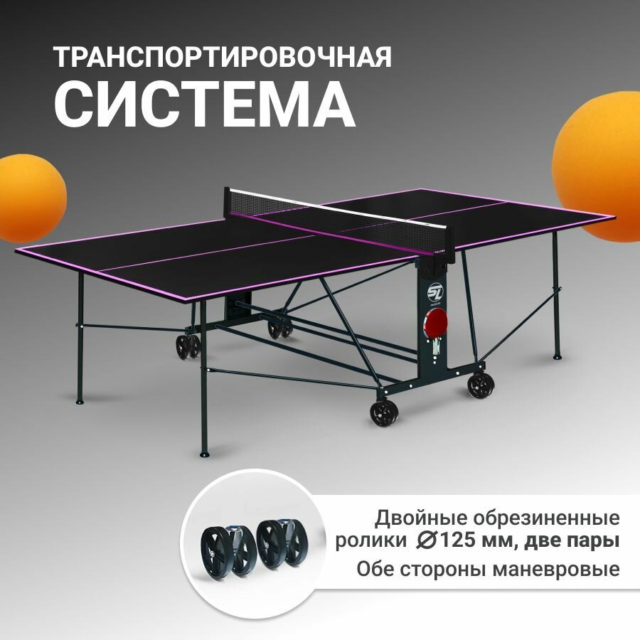 Купить Теннисный стол Start Line Compact LX черный складной, для помещений, для дома, с встроенной сеткой и колесами