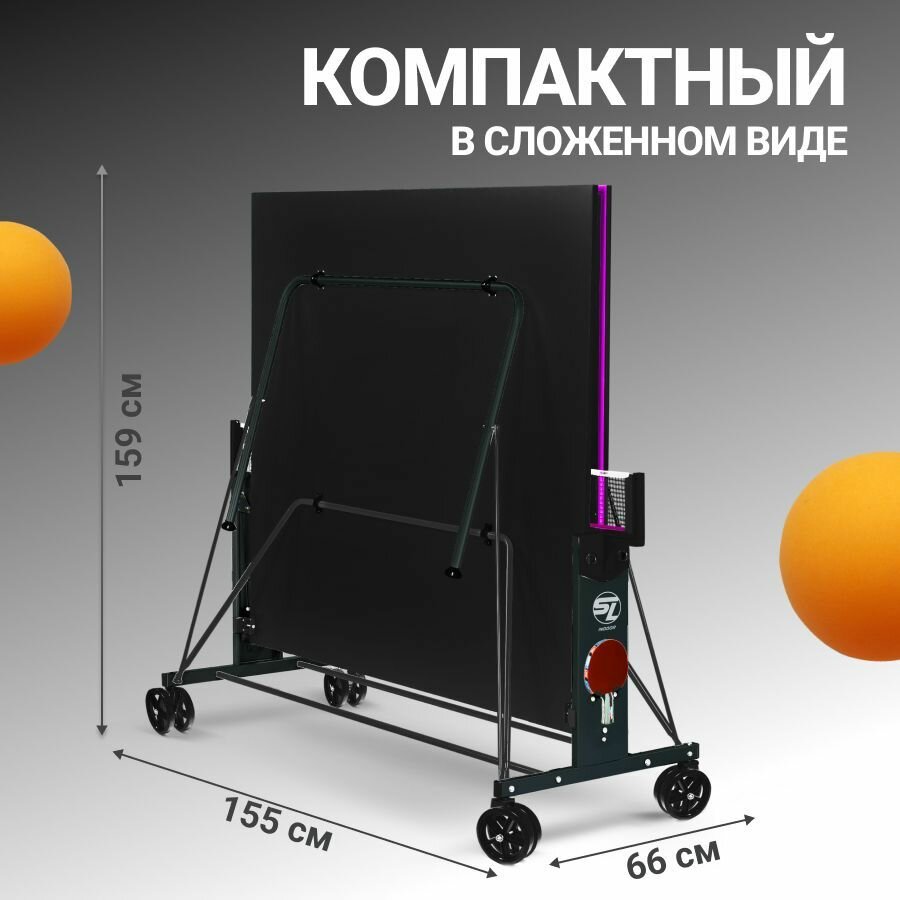 Теннисный стол Start Line Compact LX черный складной, для помещений, для дома, с встроенной сеткой и колесами интересное: