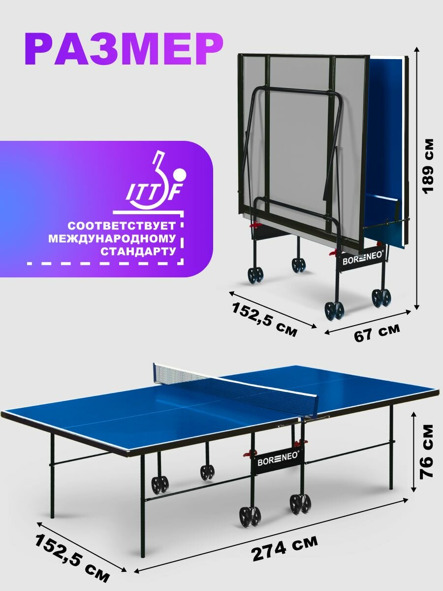 Теннисный стол всепогодный, для улицы Bor Neo MASTER OUTDOOR 6 мм АКП, синий, складной, с комплектом: 2 ракетки, 3 мяча, чехол интересное: