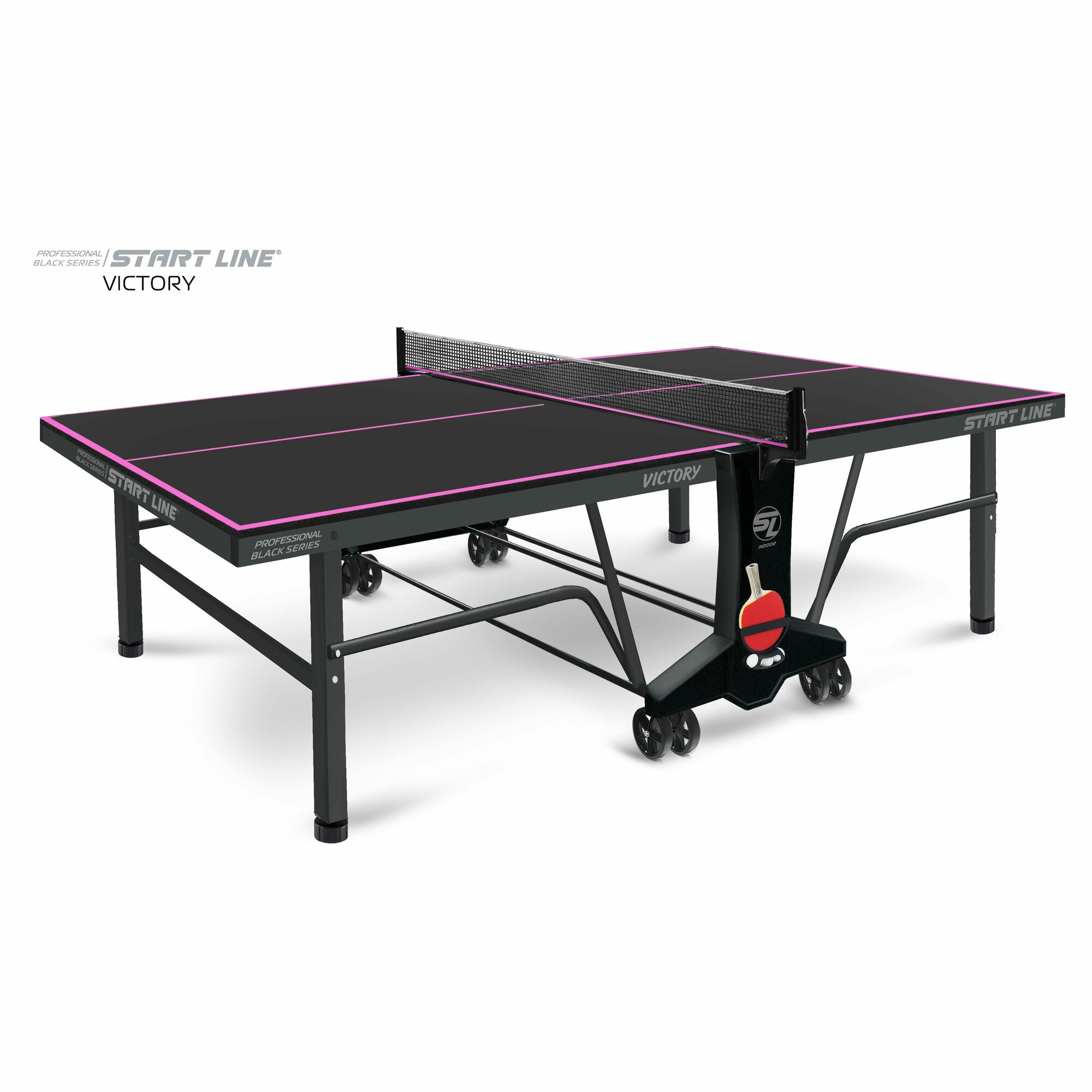 Купить Теннисный стол Start Line Victory черный, профессиональный, для помещений, для, дома, для школы, складной, с сеткой и колесами
