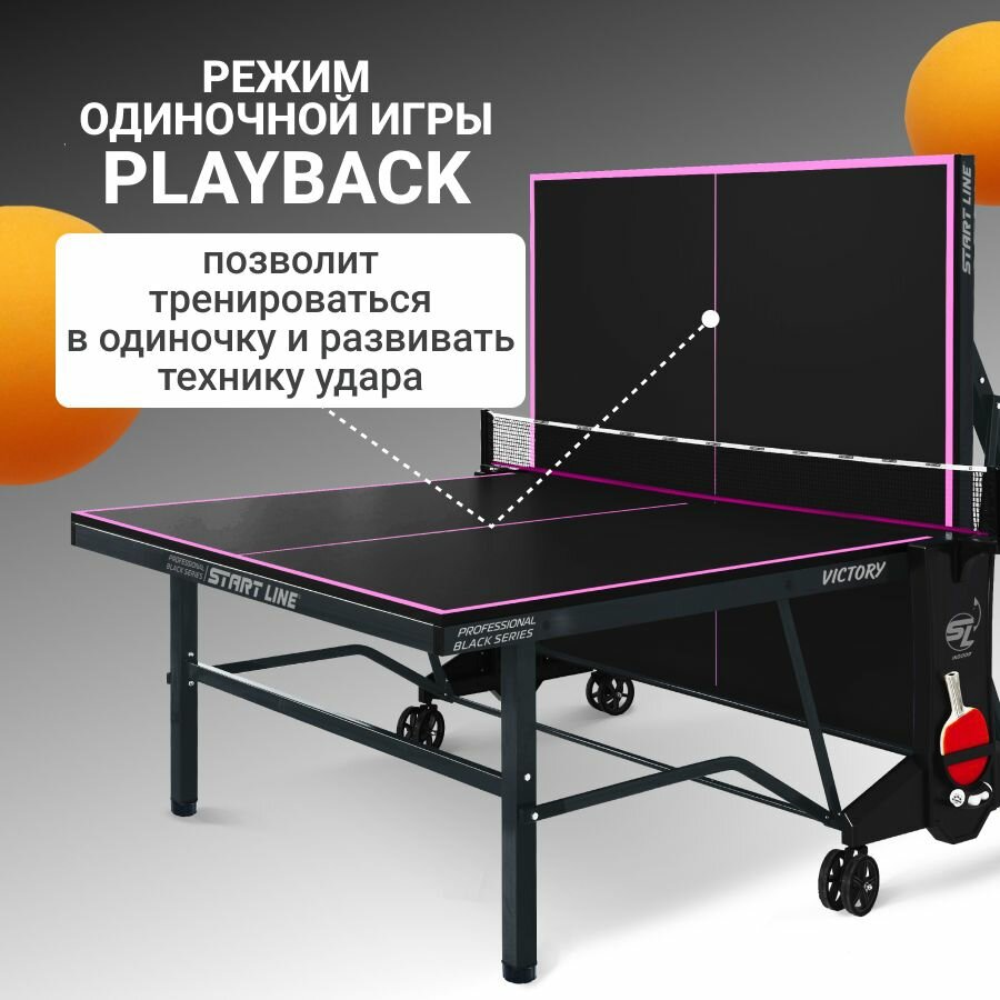 Теннисный стол Start Line Victory черный, профессиональный, для помещений, для, дома, для школы, складной, с сеткой и колесами интересное: