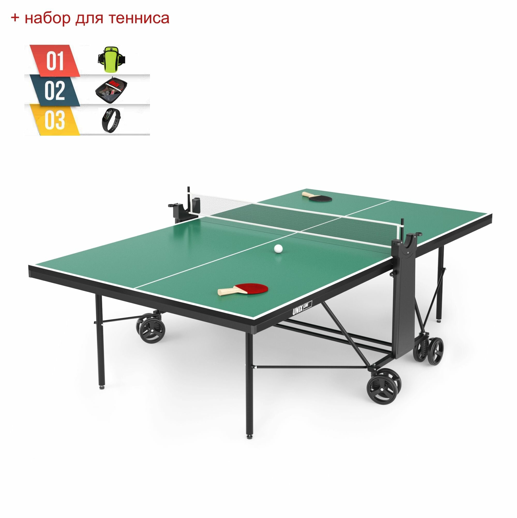Теннисный стол UNIX Line Compact indoor 18mm MDF (Green) + набор для тенниса интересное: