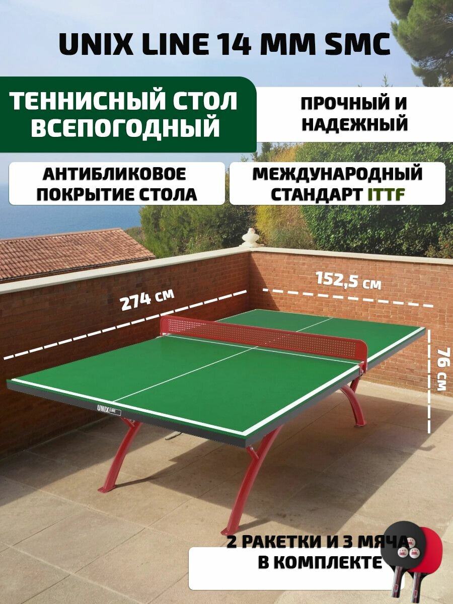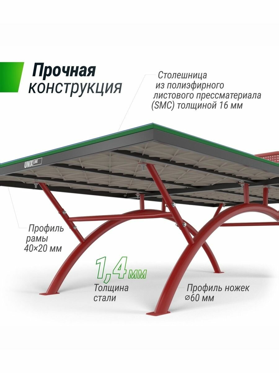 Стол теннисный UNIX Line 14 mm SMC (Green/Red) уличный складной всепогодный полупрофессиональный интересное: