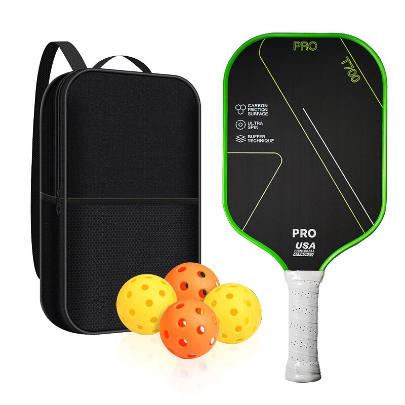 Ракетка для Pickleball T700, углеродное волокно, индивидуальный зеленый костюм, 1 удар, 2 мяча, 1 набор ударов