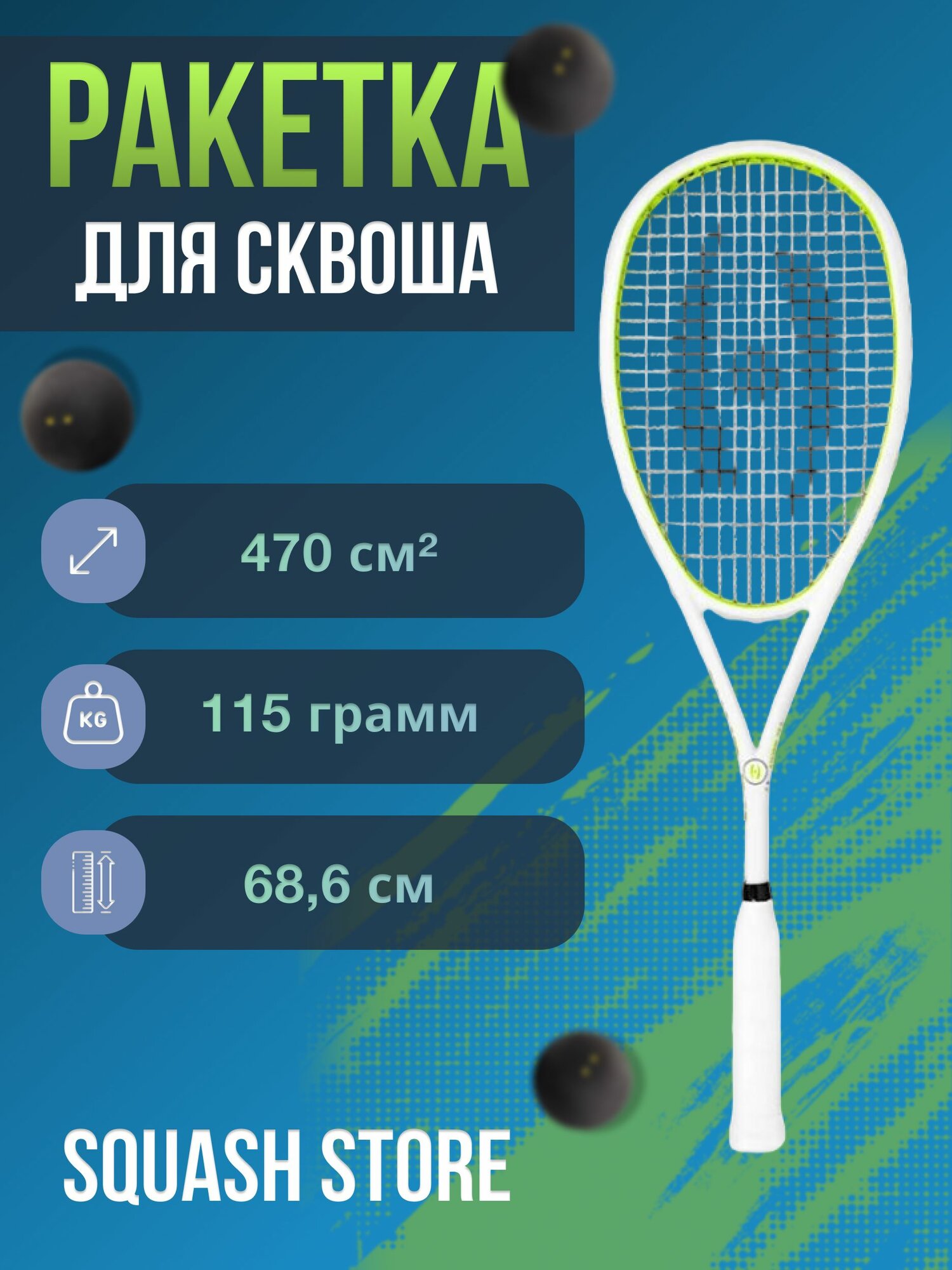 Ракетка для сквоша Harrow Vapor 115, Custom Raneem El Welily White/Lime интересное: