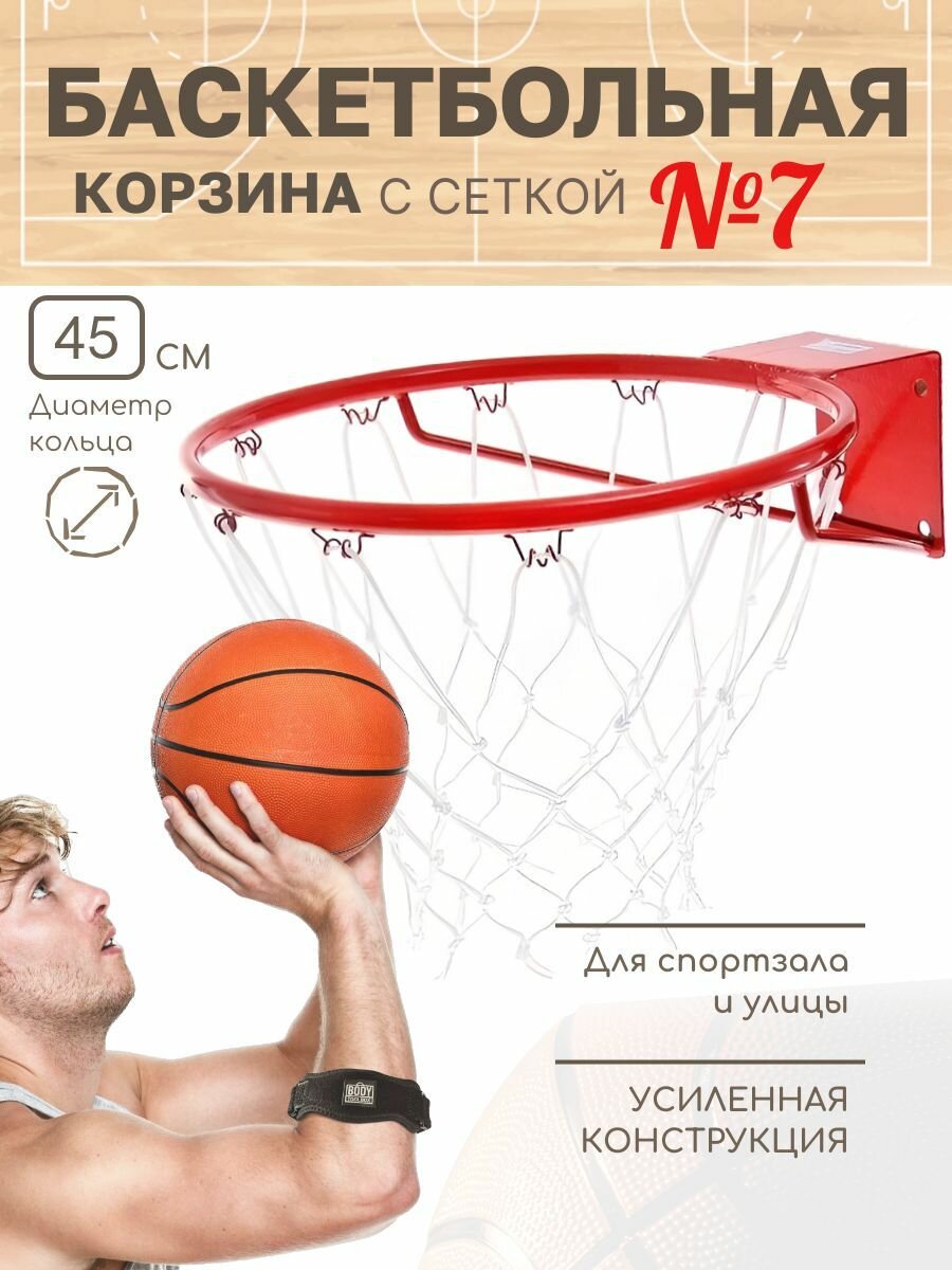 Корзина-кольцо баскетбольное №7, d 450мм, с упором и сеткой. интересное: