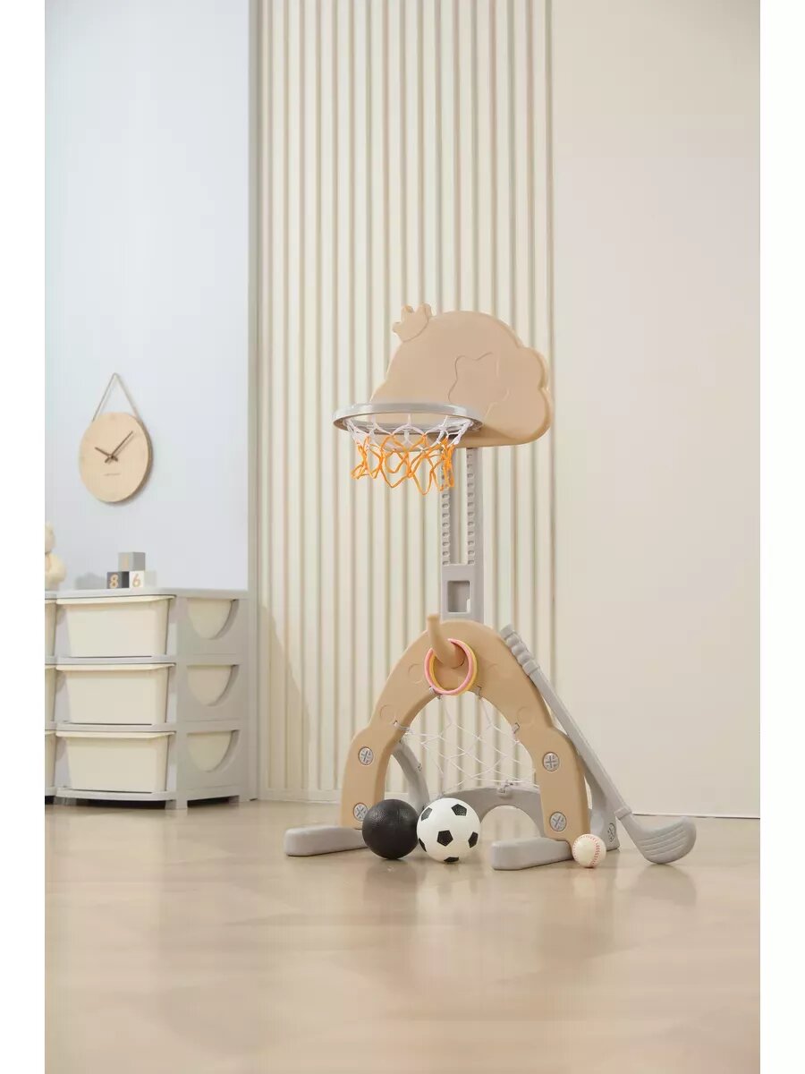 Баскетбольное Кольцо Unix Kids "Space Grey", регулировка высоты, пластик, 3 мяча, клюшка