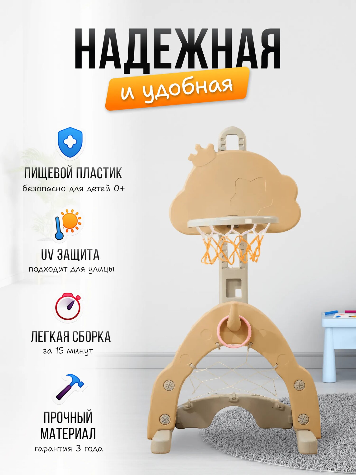 Баскетбольное Кольцо Unix Kids "Star Camel", пластик, регулировка высоты, 108см интересное: