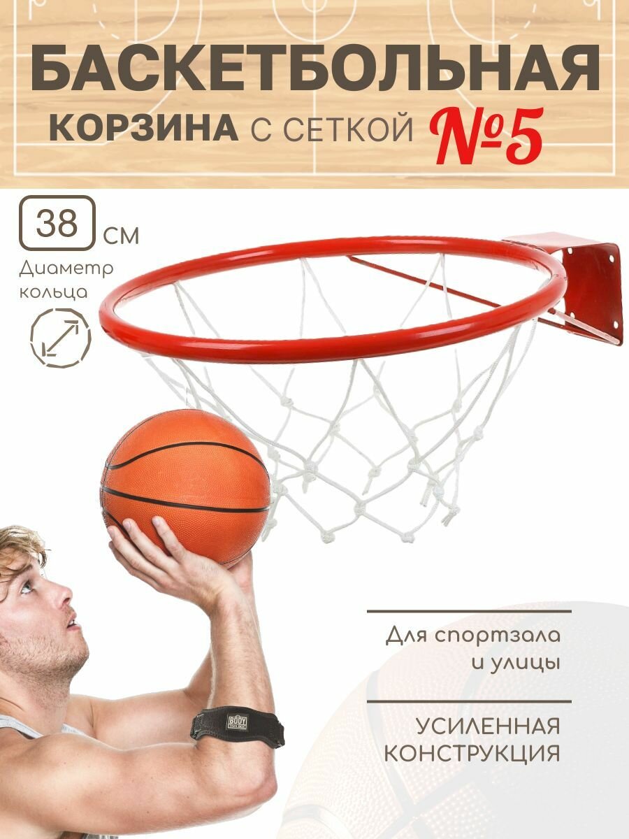 Корзина/кольцо для баскетбола №5, d 380мм, с упором и сеткой интересное: