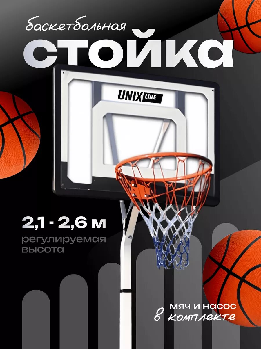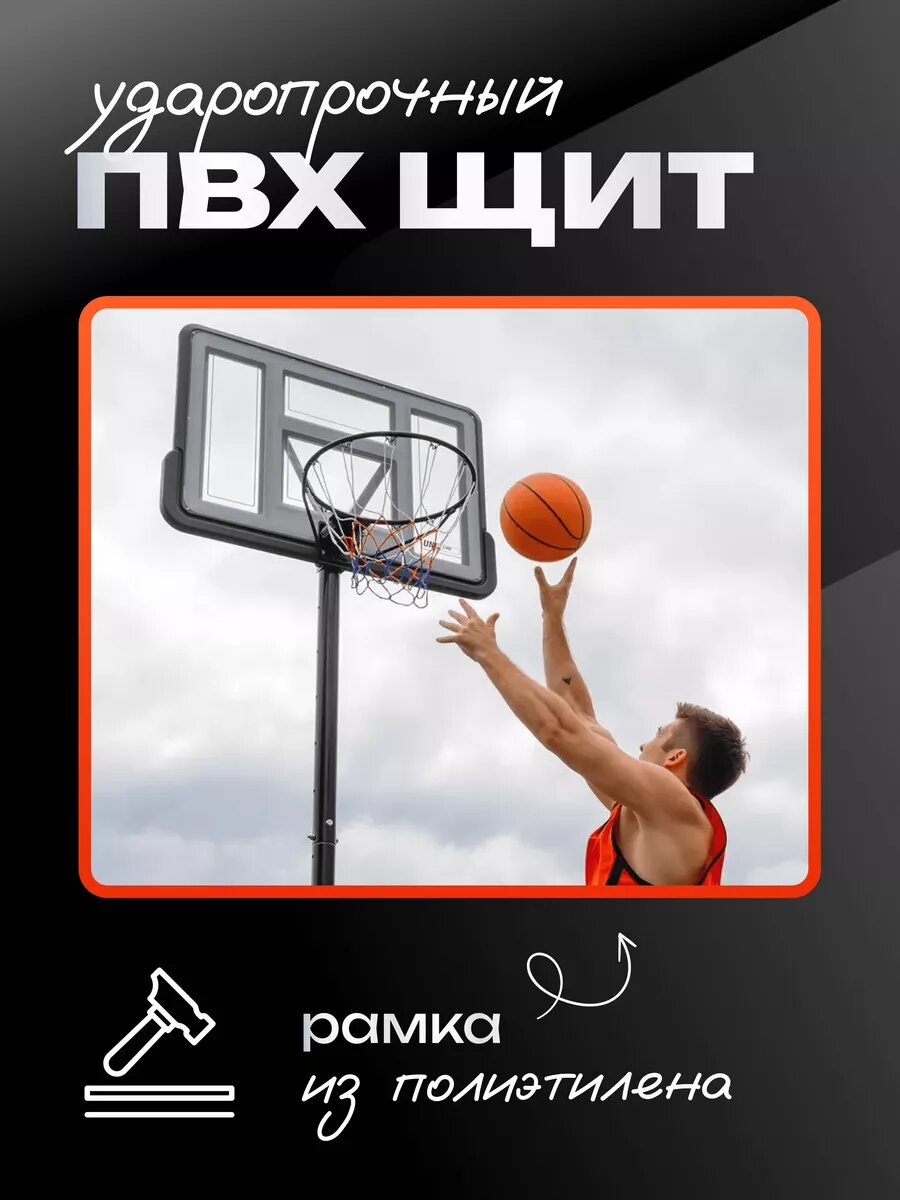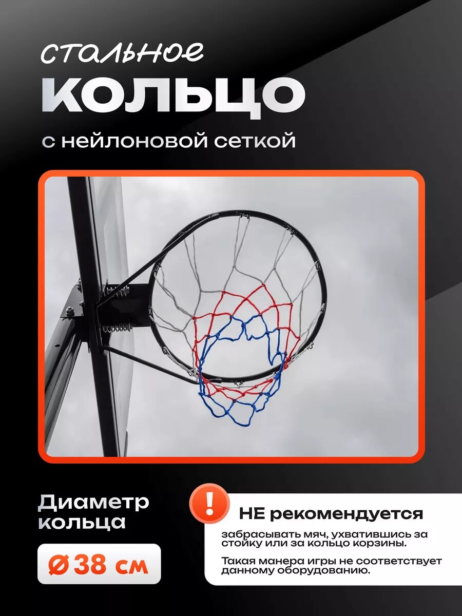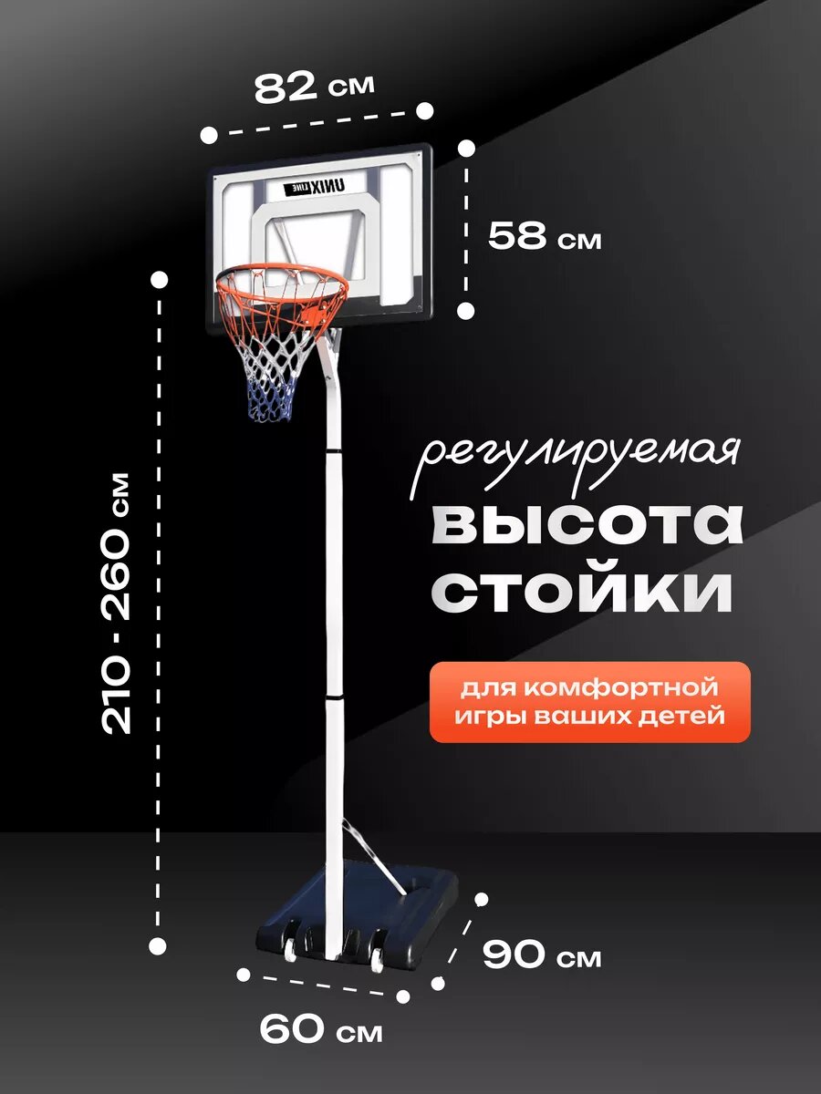 Баскетбольное кольцо на стойке 32"x23" R45 H210-260cm интересное: