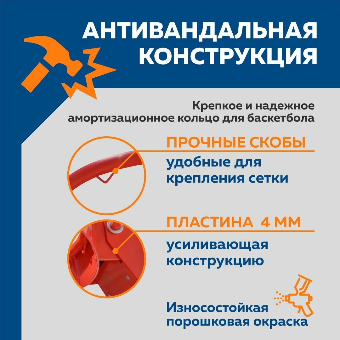 Купить Баскетбольное кольцо с сеткой 2,6 мм амортизационное усиленное профессиональное