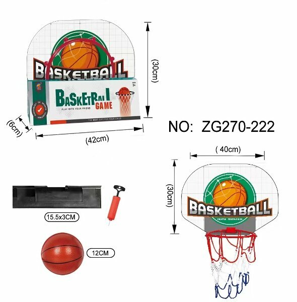 Набор тренировочный для баскетбола ZG270-222: кольцо 40*30 см, сетка, мяч 12 см, насос интересное: