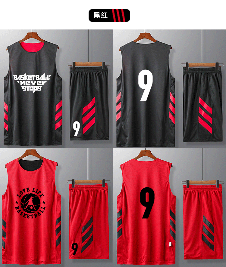 Баскетбольная форма, мужская, двусторонняя, 6XL, черная и красная