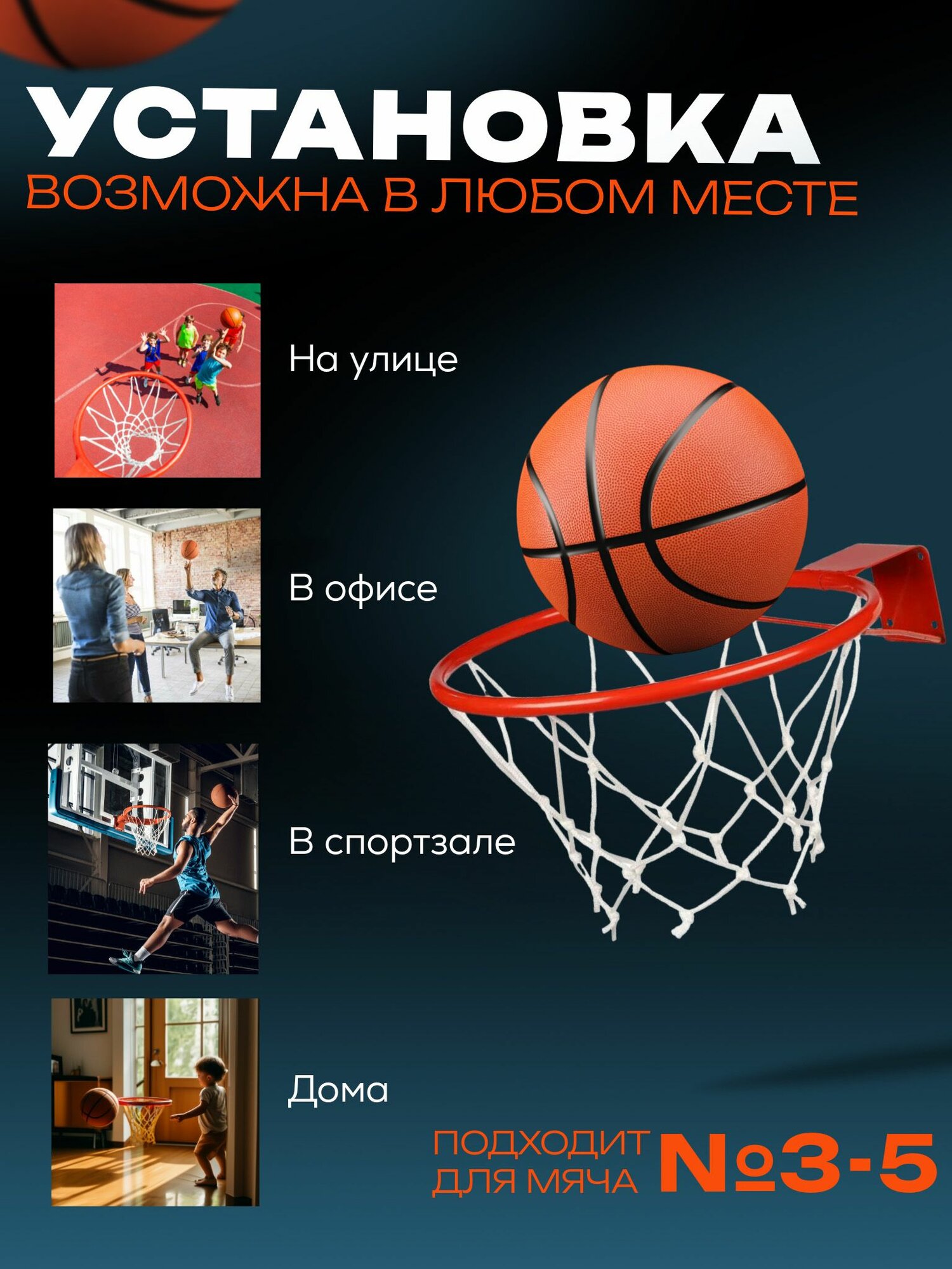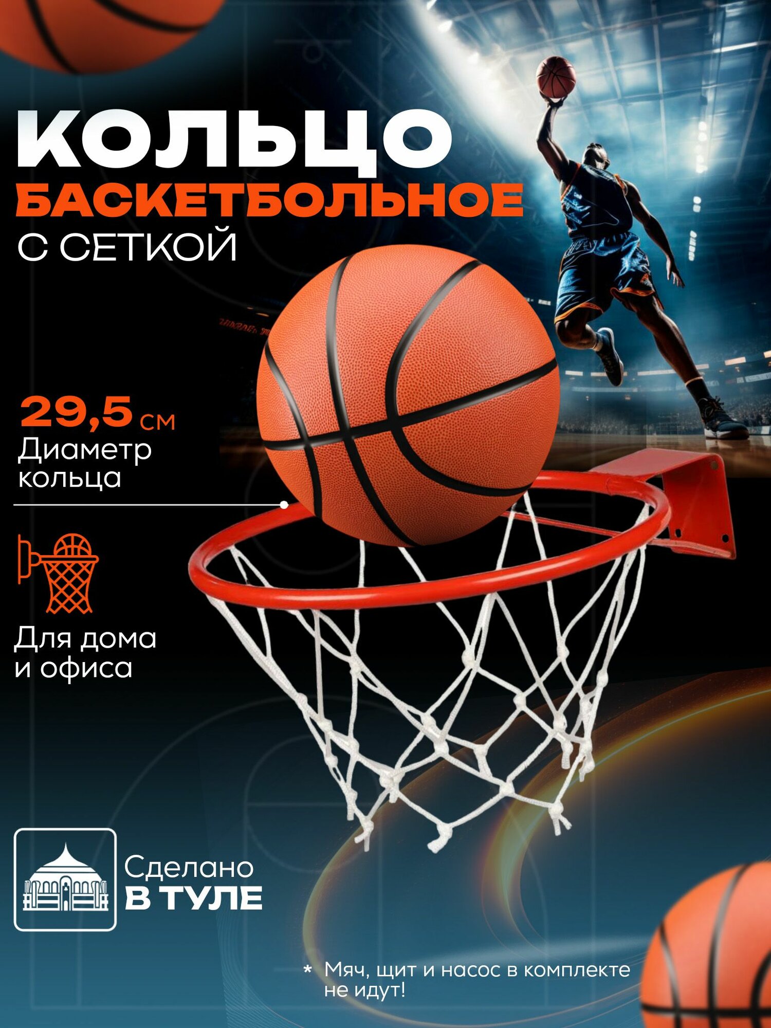 Баскетбольный кольцо Ar&Ti №3, для зала и улицы, диаметр 29.5 см, сетка, красное интересное: