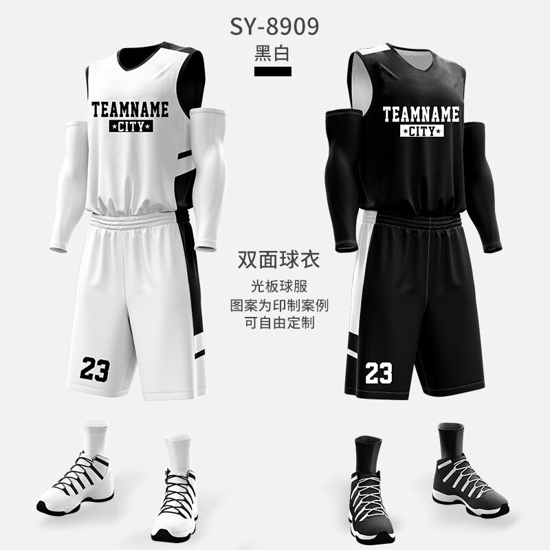 Баскетбольная форма SY8909, 6XL, черно-белая, двусторонняя, с принтом