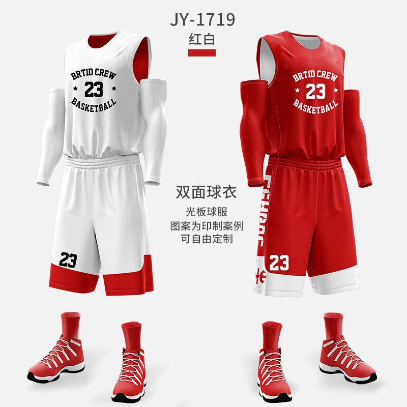 Баскетбольная форма JY1719, двусторонняя, красно-белая, 5XL