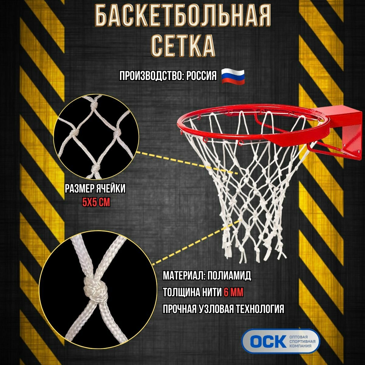 Сетка для баскетбольного кольца, нить 6мм, диаметр 450мм интересное: