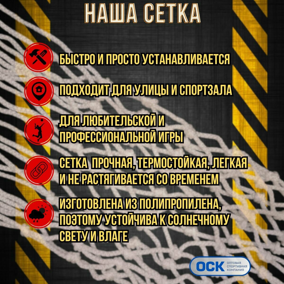 Сетка для баскетбольного кольца, нить 6мм, диаметр 450мм