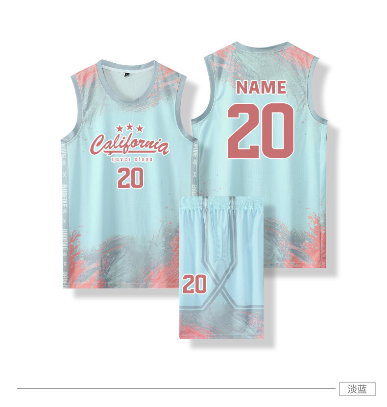 Баскетбольная форма, мужская, летняя, быстросохнущая, дышащая, светло-розовая, XL