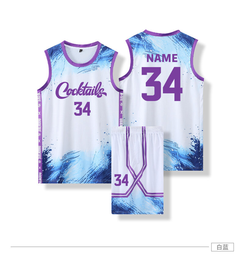 Баскетбольная форма, 236-бело-синяя, мужская, летняя, быстросохнущая, дышащая, 5XL