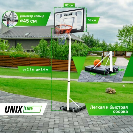 Ниже Вы можете прочитать отзывы на Баскетбольная стойка Unix Line B-Stand R45, высота 210-260см, ознакомится с подробными характеристиками, посмотреть интересные обзоры и фотографии на Баскетбольная стойка Unix Line B-Stand R45, высота 210-260см.
