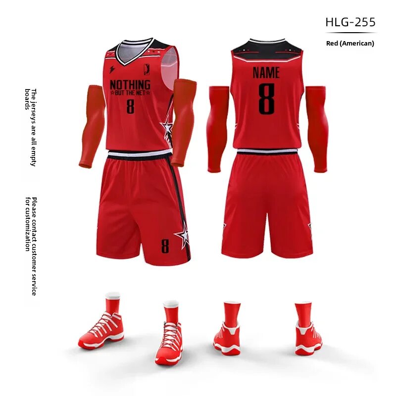 Баскетбольная форма HLG-255, мужская, 3XL, красная, дышащая, быстросохнущая
