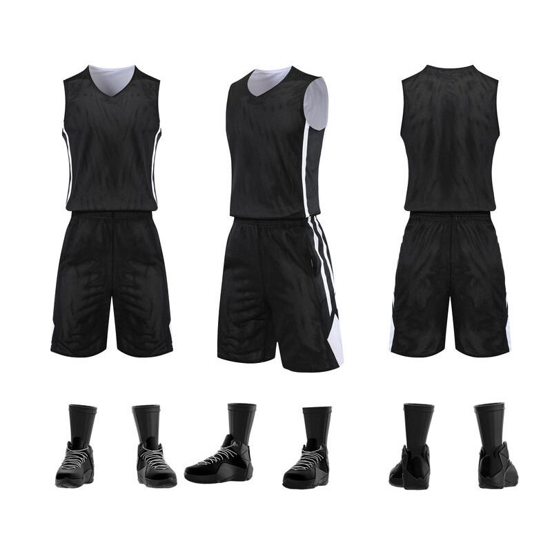 Баскетбольная форма, быстросохнущая, двусторонняя, с принтом, XXL, черная/белая